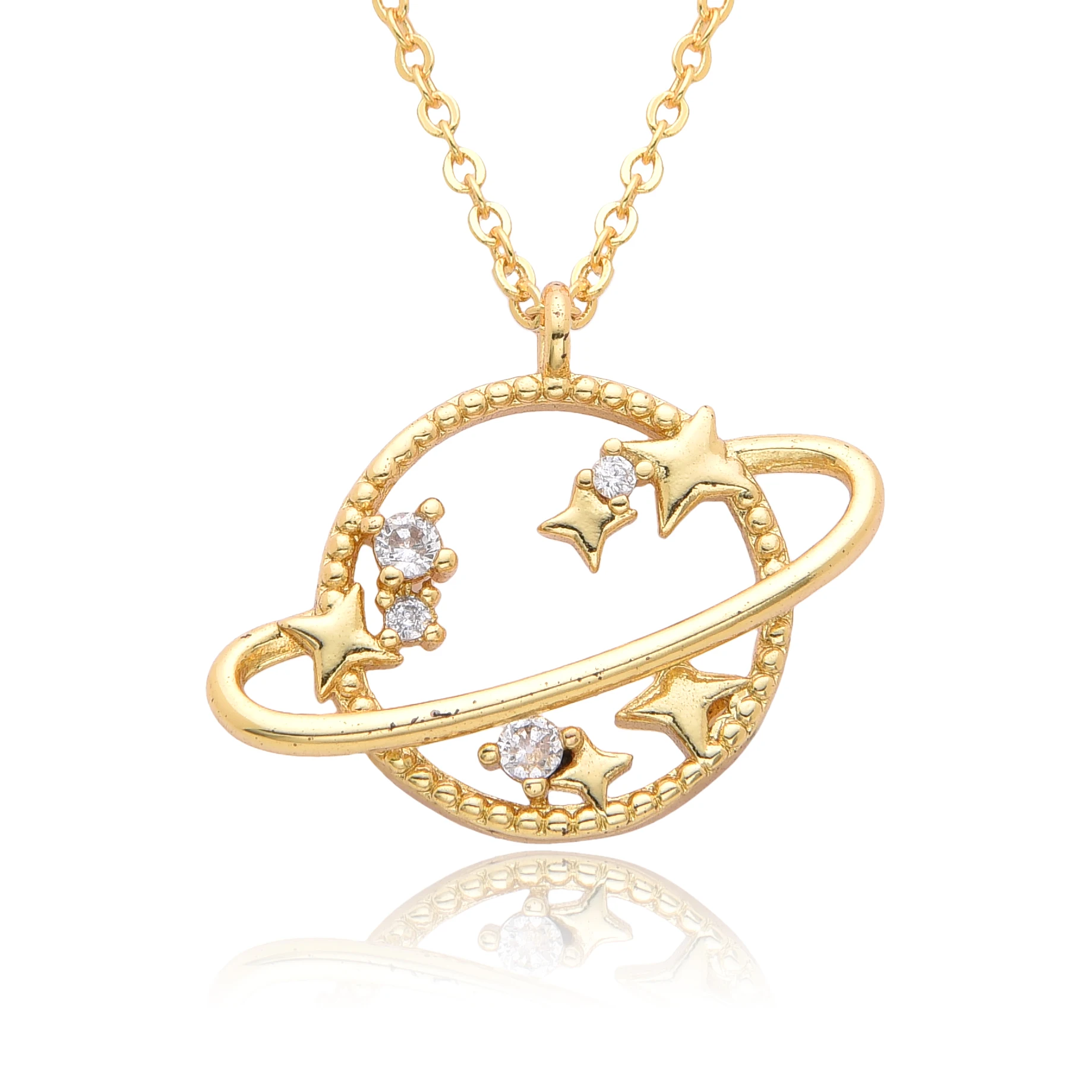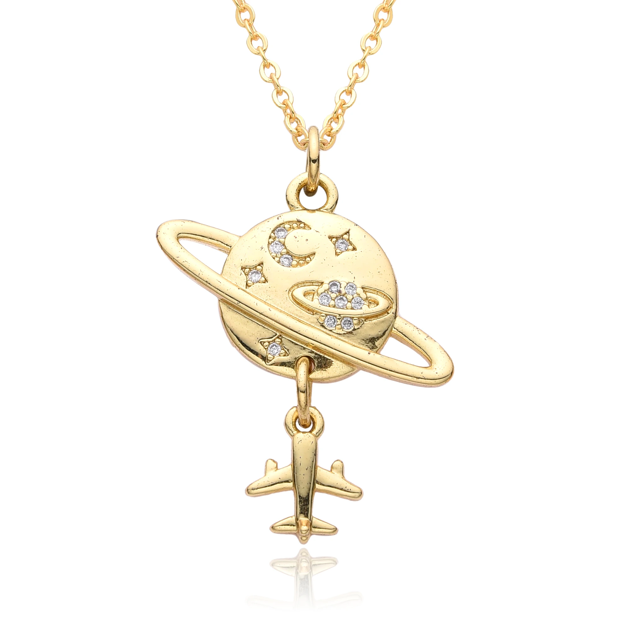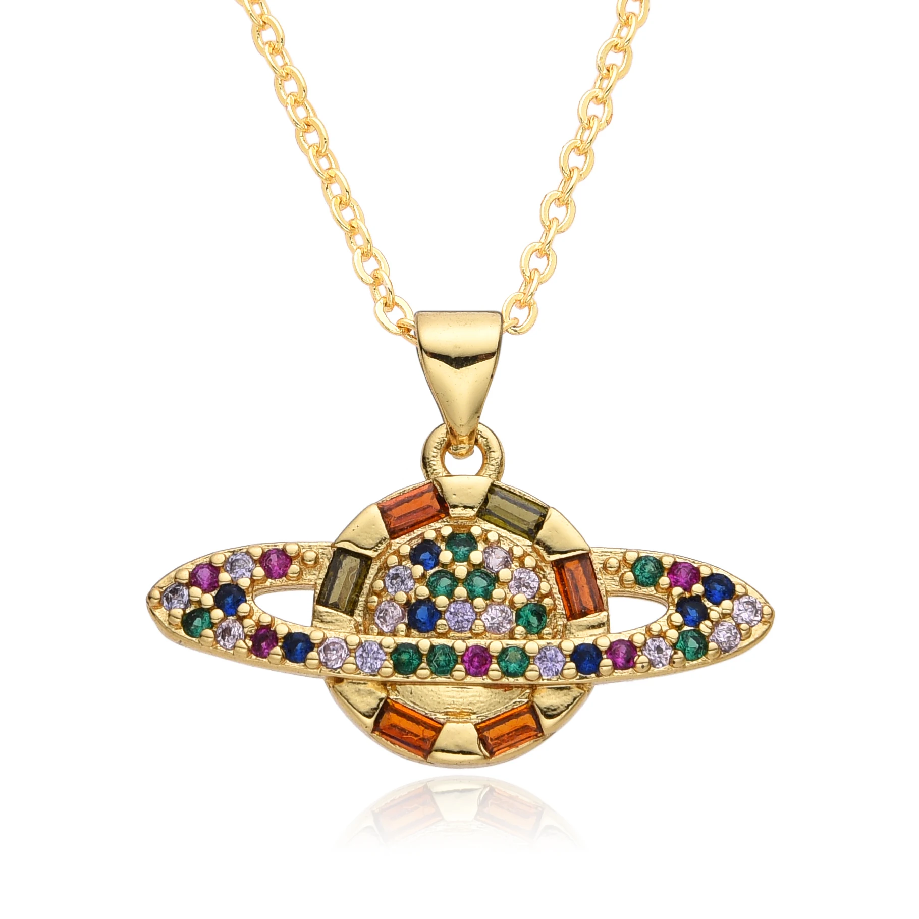 Y2K Gold Color Saturn Charms Micro-inlaid CZ Necklace for Women Planet Choker Chain Pendant DIY Jewelry Christmas Gift Wholesale