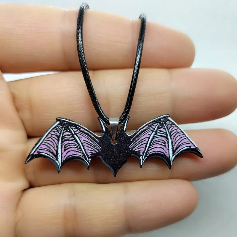 Yungqi Acrylic Bat Pendant Necklaces for Women Girl Minimalist Rope Chain Choker Halloween Animal Necklace Jewelry Collier