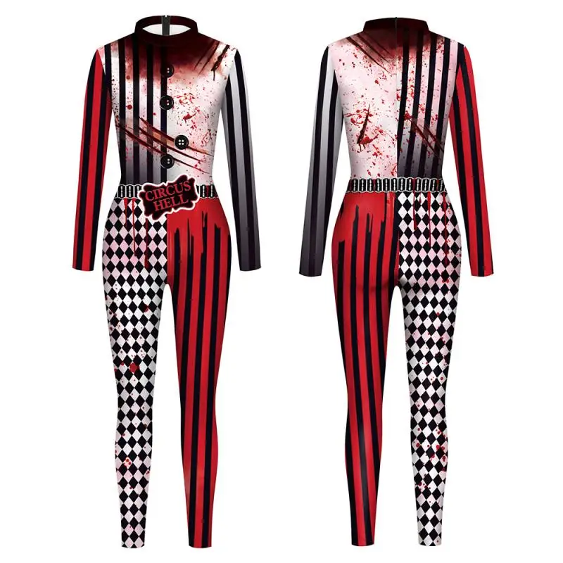 Zawaland Cosplay Costume Clown Women Printing Halloween Dress Up Matching Set Jumpsuits Carnival Party Dress Leggings Bodysuit